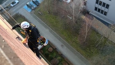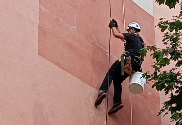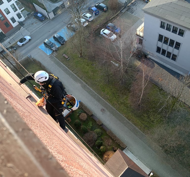 Usługi alpinistyczne: Mycie okien, malowanie, montaż reklam, zabezpieczanie przed ptakami..