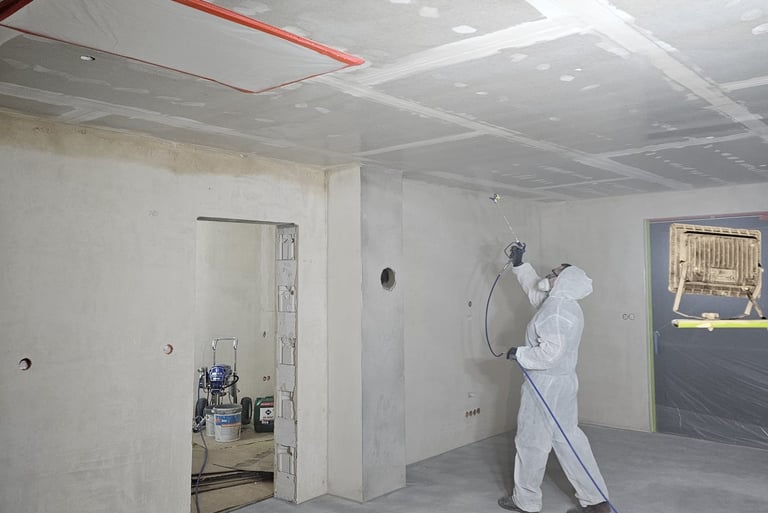 Oferujemy profesjonalne usługi malarskie z wykorzystaniem nowoczesnych agregatów malarskich i ekologicznych farb.
