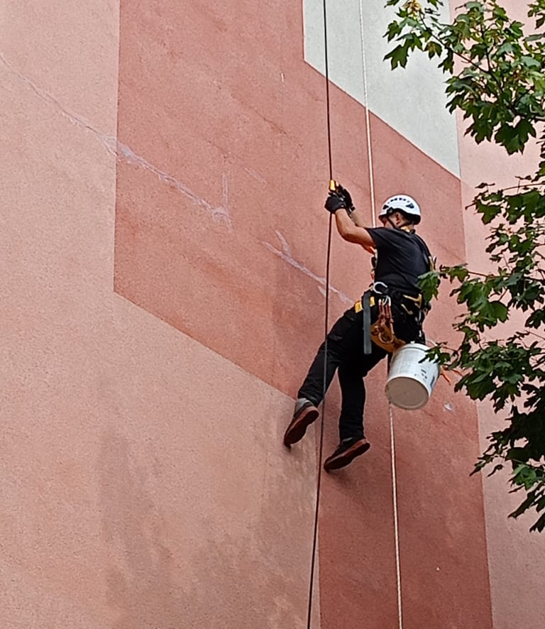 Prace w trudno dostępnych miejscach: Wykorzystanie lin i sprzętu alpinistycznego do dostępu do miejsc, gdzie trudno dotrzeć innymi metodami, np. usuwanie odpadających tynków, usuwanie graffiti, przycinanie koron drzew